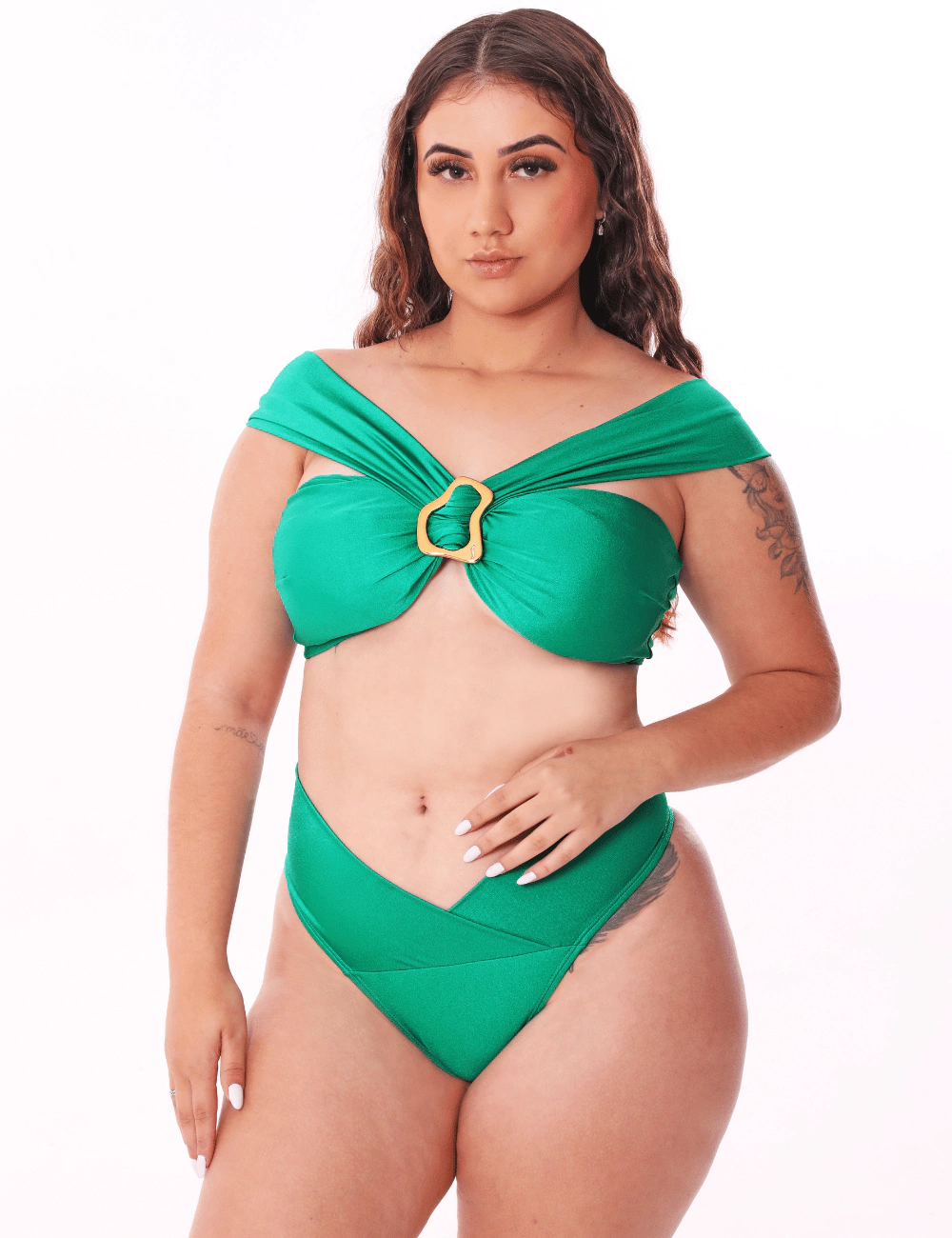 Sabe aquele toque especial que transforma qualquer look de praia em puro charme? O top de biquíni com acessório dourado chegou para ser o destaque do seu verão! Com design vibrante e detalhes que exalam tropicalismo, ele é perfeito para quem ama se sentir única e cheia de personalidade. O acessório dourado entre os seios traz um brilho sofisticado, enquanto as opções em cores lisas garantem versatilidade para você montar combinações incríveis.